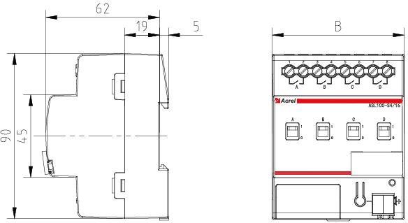 產品型號 | 模塊寬度(B)mm | 回路數 |