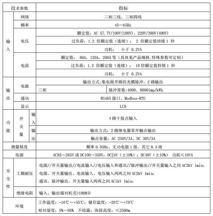 外置羅氏線圈和開合式互感器的導軌式諧波表,適用于冶煉、鋼鐵、電焊、半導體等高能耗行業的節能改造工程,也適用于分布式光伏并網柜的功率監測、電力需求側管理等應用。具有無需拆一次母線、接線簡單方便、施工安全,為用戶節約改造成本等特點。它集成全部電力參數的測量(如單相或者三相的電流、電壓、有功功率、無功功率、視在功率、頻率、功率因數等)、復費率電能計量、四象限電能計量、諧波分析以及電能監測和考核管理。同時它具有多種外圍接口功能可供用戶選擇:帶有RS485通訊接口,采用MODBUS-RTU協議可滿足通訊聯網管理的需要;帶開關量輸入和繼電器輸出可實現斷路器開關的“遙信”和“遙控”的功能,采用LCD顯示界面,通過面板按鍵來實現參數設置和控制,非常適合于實時電力監控系統。