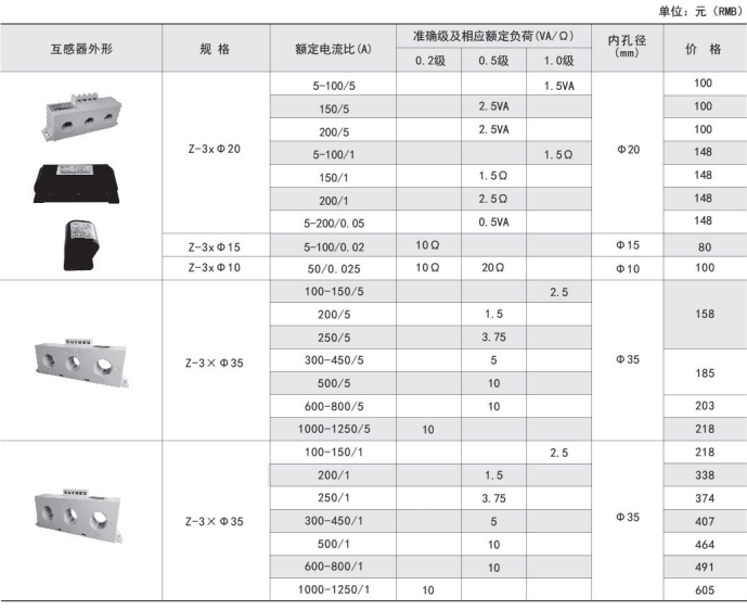 準(zhǔn)確級(jí)及相應(yīng)額定負(fù)荷(VA/Ω) |