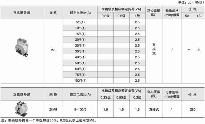 一次電流較小,容量2.5VA及以下用于測量或保護,多用于低壓抽屜柜等小空間場所。