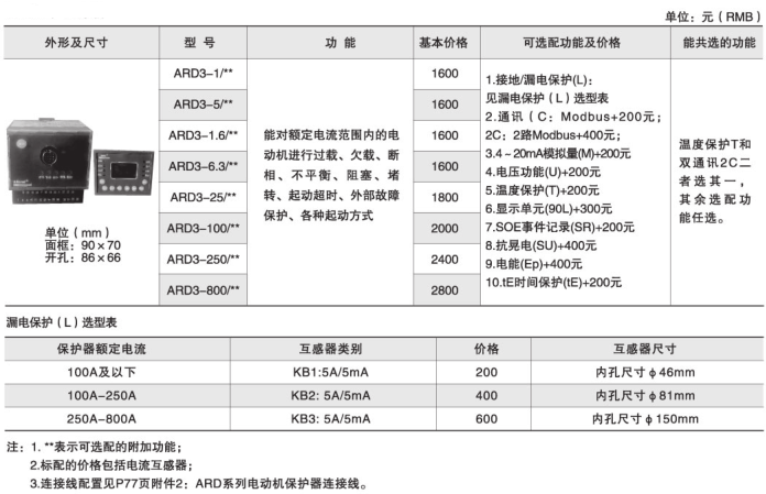 ARD2、ARD2F、ARD3配電流互感器,但1A/5A規(guī)格,不配一次互感器。