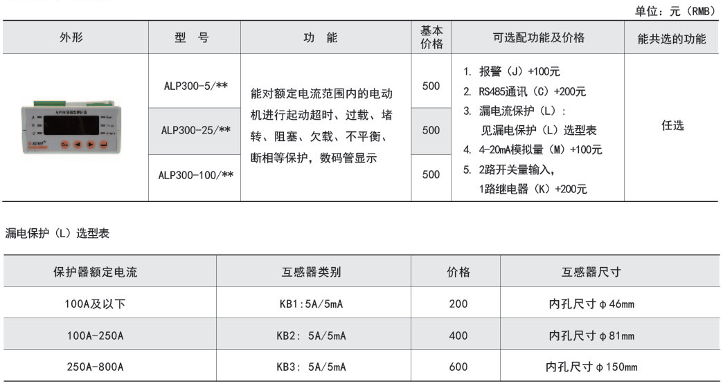 ALP300 保護器(以下簡稱保護器),采用單片機技術,具有抗干擾 能力強、工作穩定可靠、數字化、智能化等特點。保護器能對電動機運行過程 中出現的起動超時、過壓、欠壓、過載、斷相、不平衡、欠載、接地/漏電、阻 塞、短路、外部故障等多種情況進行保護,現場維護人員可通過數碼管顯示屏 快速查找故障原因。本保護器具有 RS485 遠程通訊接口,DC4~20mA 模擬量 輸出,方便與 PLC、PC 等控制機組成網絡系統,實現電動機運行的遠程監控。