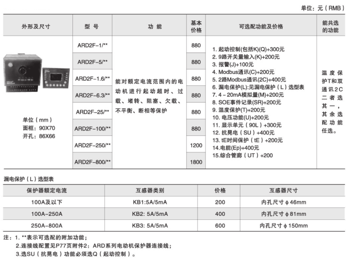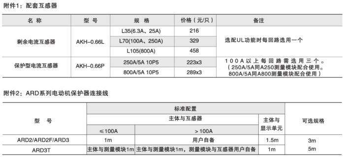 ARD2、ARD2F、ARD3配電流互感器,但1A/5A規(guī)格,不配一次互感器。