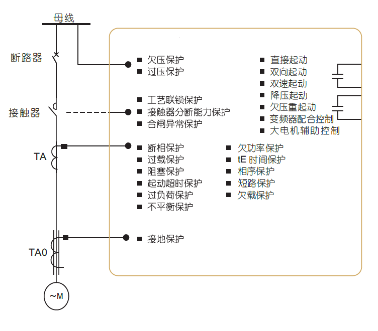 該系列低壓電動(dòng)機(jī)保護(hù)器,具有過載、斷相、不平衡、欠載、接地/漏電、堵轉(zhuǎn)等保護(hù)功能。可與接觸器、電動(dòng)機(jī)起動(dòng)器等電器元件構(gòu)成電動(dòng)機(jī)控制保護(hù)單元,具有遠(yuǎn)程自動(dòng)控制、現(xiàn)場(chǎng)直接控制、面板指示、信號(hào)報(bào)警、現(xiàn)場(chǎng)總線通信等功能。