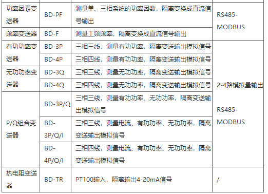 BD系列電力變送器是一種將電網中的電流、電壓、頻率、功率、功率因數等電參量,經隔離變送成線性的直流模擬信號或數字信號的裝置。