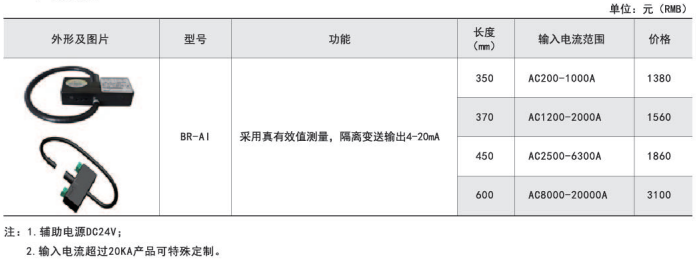 BR系列產品應用電磁感應原理,對電網中的交流大電流進行實時測量,采用真有效值和線性補償技術,將其隔離變換為標準的直流信號輸出。應用范圍: