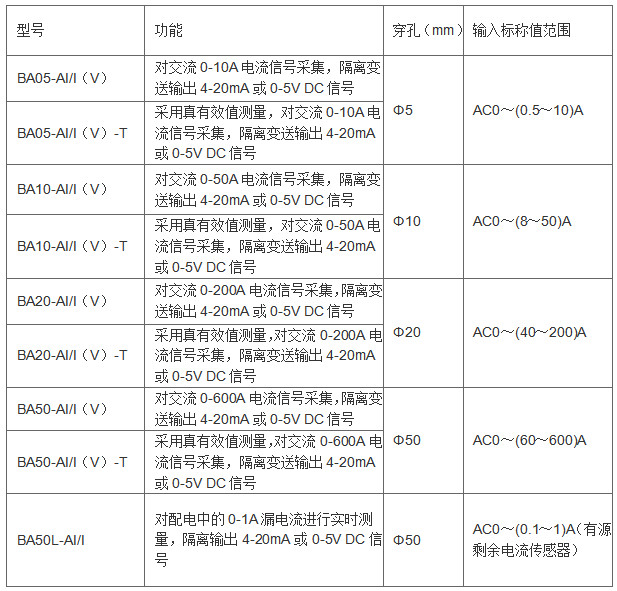 BA系列產品應用電磁感應原理,對電網中的交流電流進行實時測量,將其隔離變換為標準的直流信號輸出。