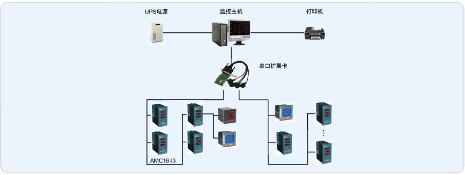該項目Acrel-2000型電力監控系統的監控范圍是:內江天科化工有限責任公司的低壓配電室。該低壓配電室主要對環己酮的生產設備進行供電。具體的監控點位包括兩個進線、一個母聯和7個低壓配電柜內的智能電測儀表。