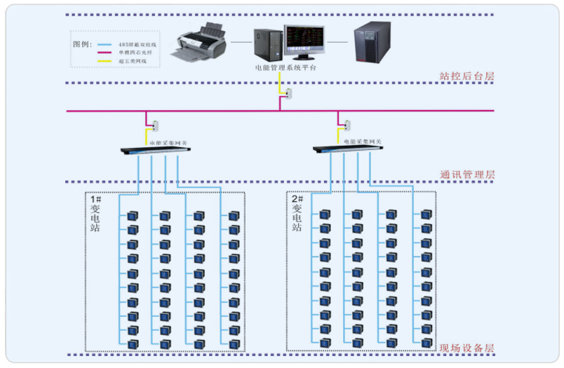 2.各個變電所內進出線回路的電能和電參量的數據采集、電能計量。