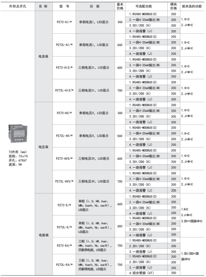 具體型號:PZ72-E4/C技術參數(shù) | 指 標 | |