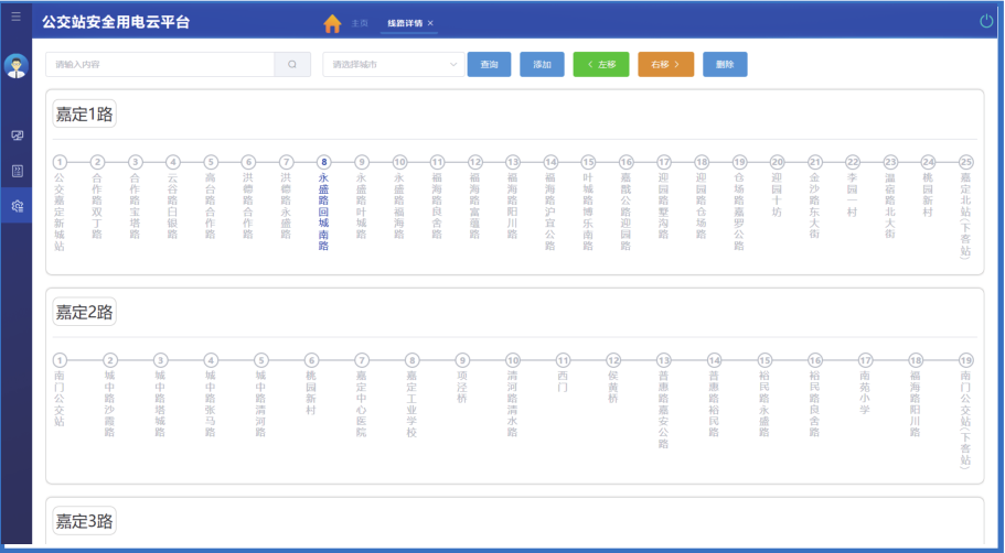 系統提供各類基礎資料配置接口,用戶可根據項目實際情況對城市、公交線路、公交站、用戶等信息進行配置;