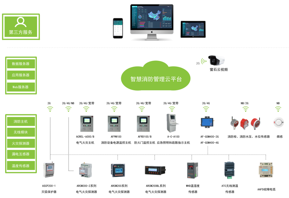 智慧消防管理云平臺包含了智慧用電子系統(tǒng)、防排煙子系統(tǒng)、消防水子系統(tǒng)、消防設(shè)備電源子系統(tǒng)、防火門子系統(tǒng)、消防設(shè)備管理子系統(tǒng)和視頻監(jiān)控子系統(tǒng)等。